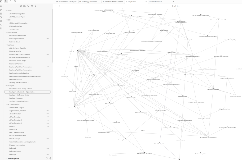 The site has been extended to form a number of AI Knowledge Bases covering Innovation, Education, STEAM, Health, UK Industry 4 Transformation, IT Resilience, The Innovation Centre, Southport Rejuvenation. For larger projects such as UK Transformation the information contained here has been extended in an extensive Obsidian AI Knowledge Base. It has been built with support from Microsoft’s Copilot and Anthropic’s Claude