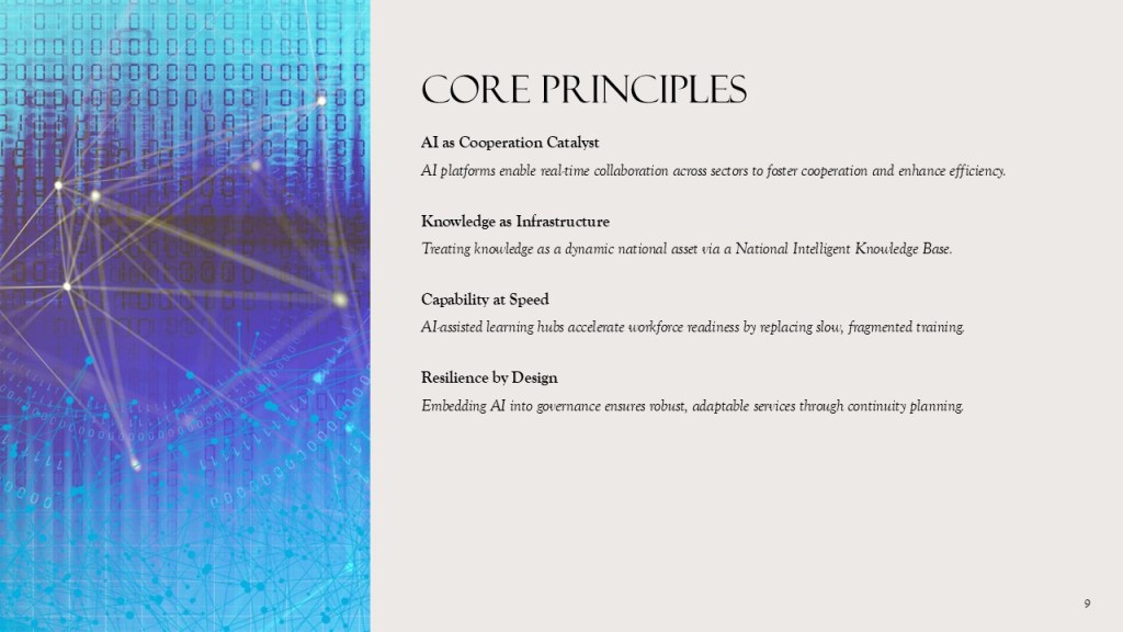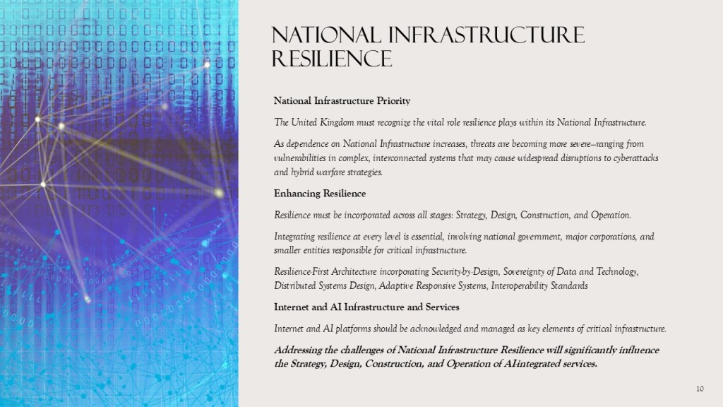 Instead of focusing only on resilience, I’ve included it in the broader transformation of the UK and AI’s role. This has led me to build on past work and expand the slides to provide a strategic view on resilience governance and oversight.