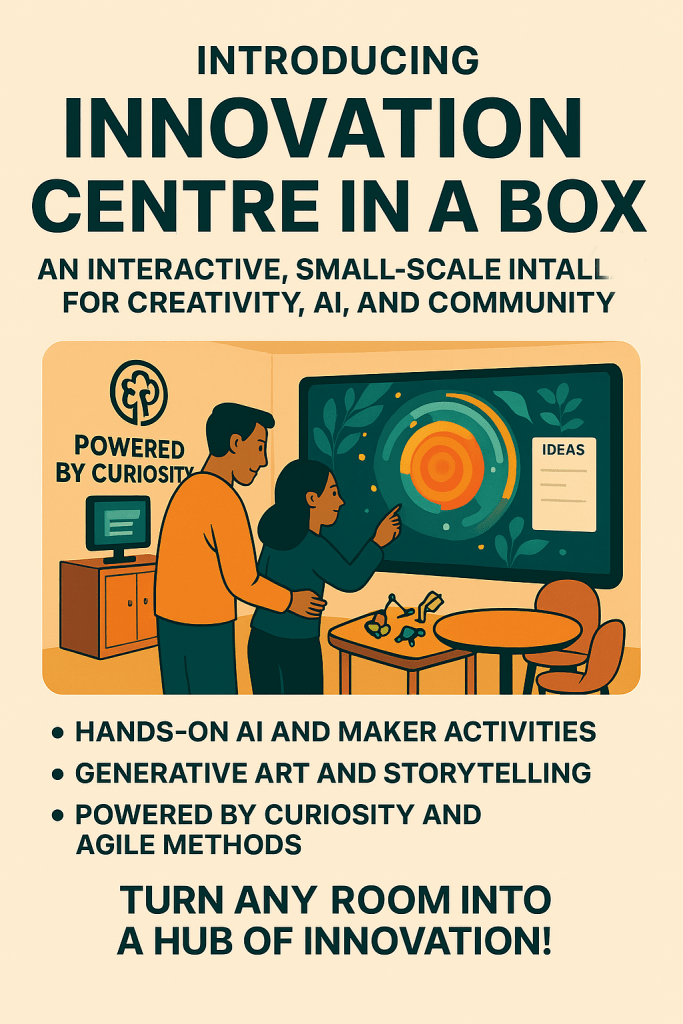 Absolutely, David! Let’s distill the essence of the Innovation Centre into a compact, flexible form—a modular Innovation Centre in a Box. This concept transforms a single room into a dynamic hub of creativity, AI, and community collaboration, making it perfect for pilot deployments, classrooms, pop-ups, or travelling exhibits.