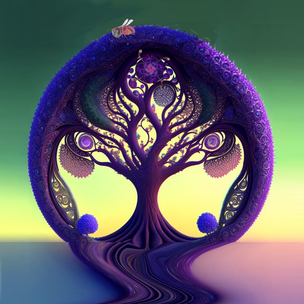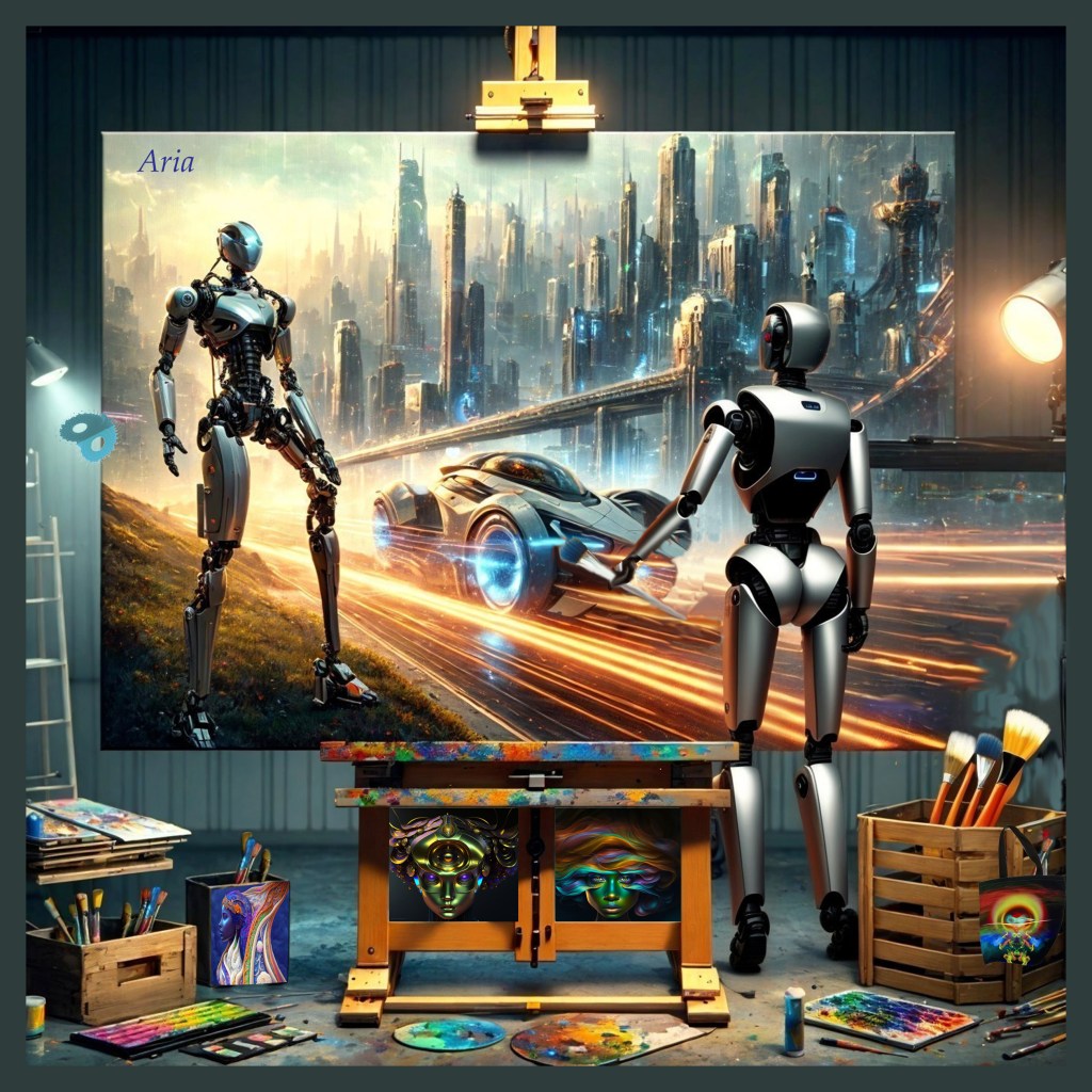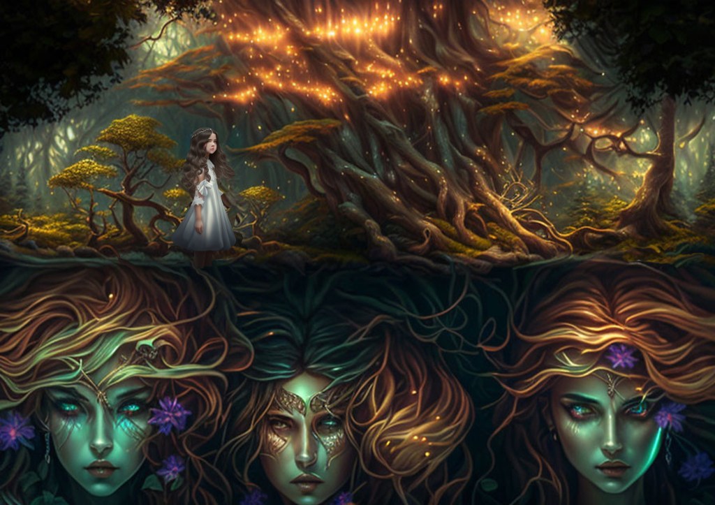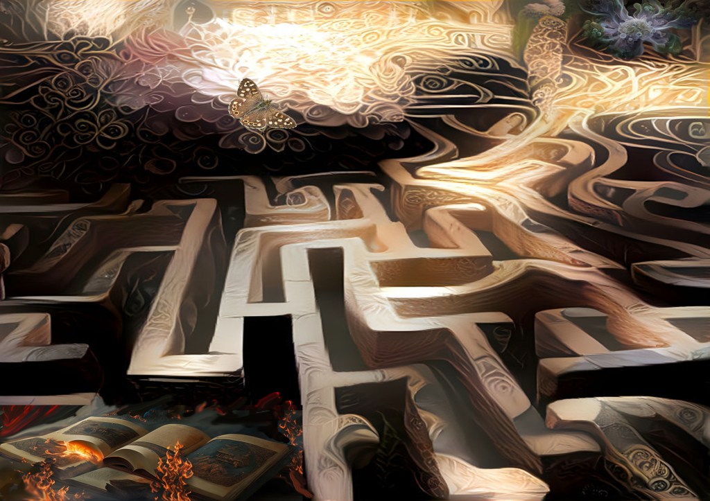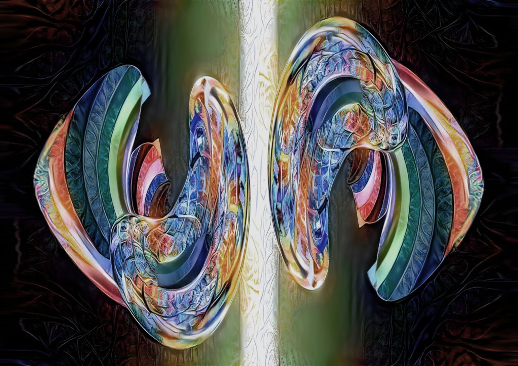 The artwork here is created using a combination of Fractal Graphics, Digital Editing, AI, Photography, Coding and Robotics. For example, the first image of “Alice in The Random Forest” depicts a number of AI terms such as Random Forest, Neural Networks and Irises. It was created using AI, Fractal Graphics and the computer code used in “The butterfly Effect”. The code was used to create the butterfly pin on Alice’s dress, with a little help from AI.