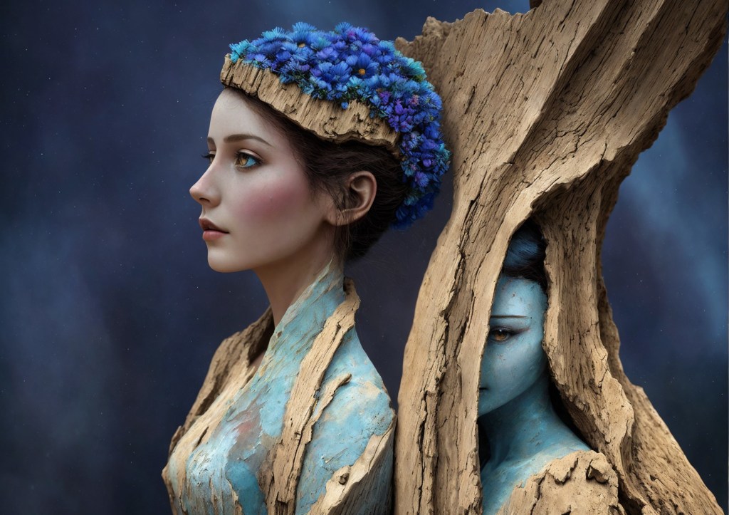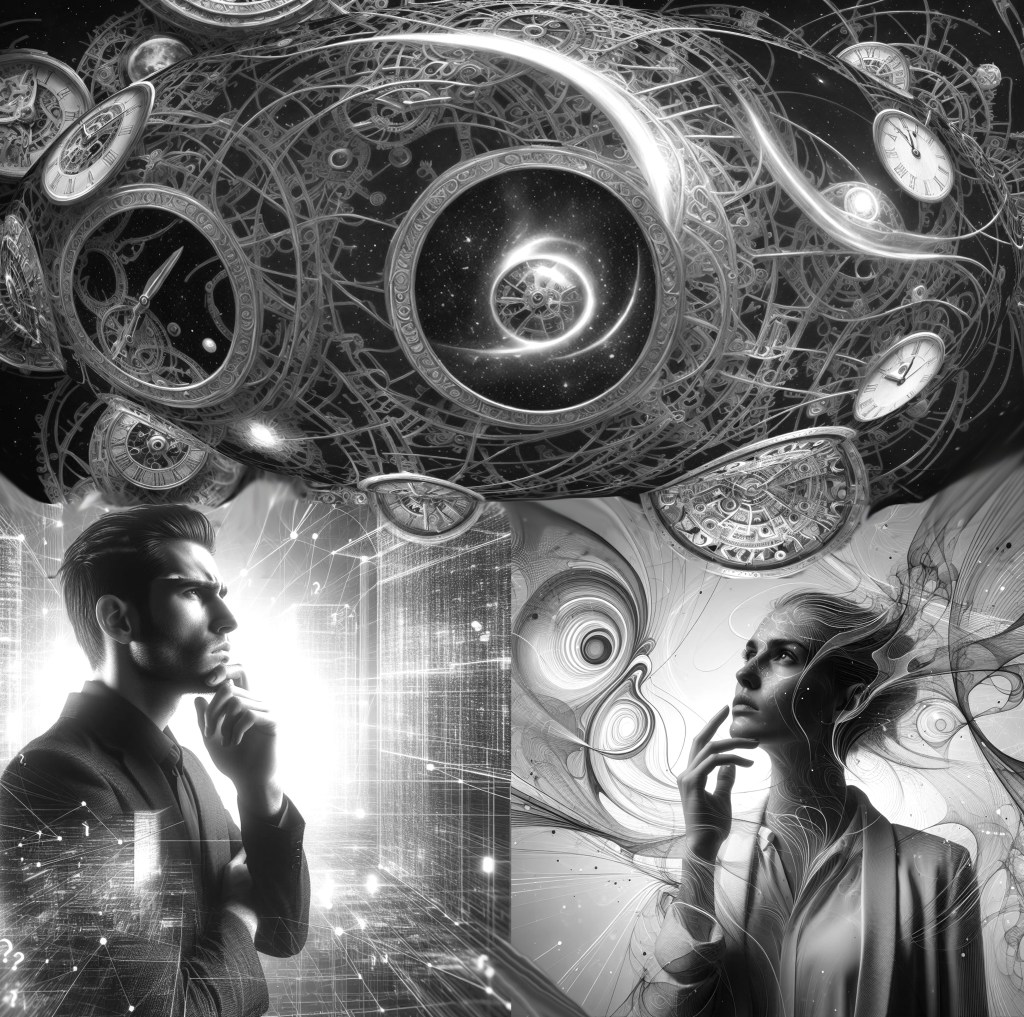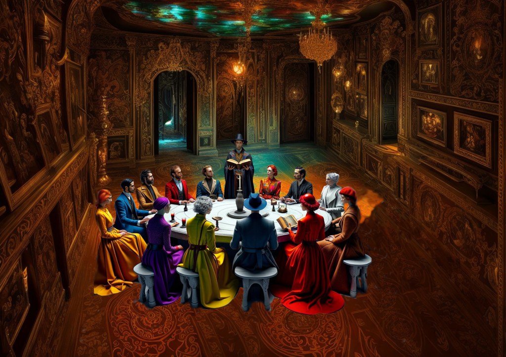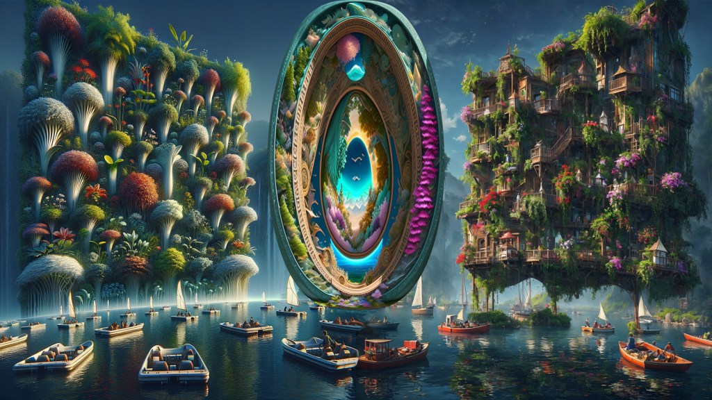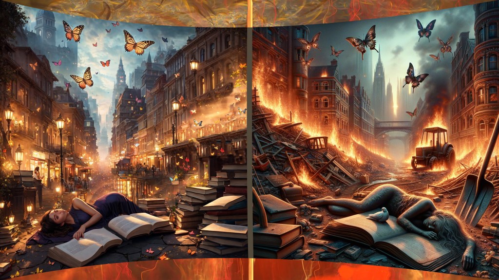 The artwork here is created using a combination of Fractal Graphics, Digital Editing, AI, Photography, Coding and Robotics. For example, the first image of “Alice in The Random Forest” depicts a number of AI terms such as Random Forest, Neural Networks and Irises. It was created using AI, Fractal Graphics and the computer code used in “The butterfly Effect”. The code was used to create the butterfly pin on Alice’s dress, with a little help from AI.