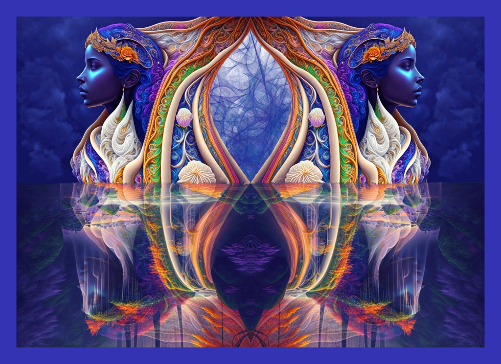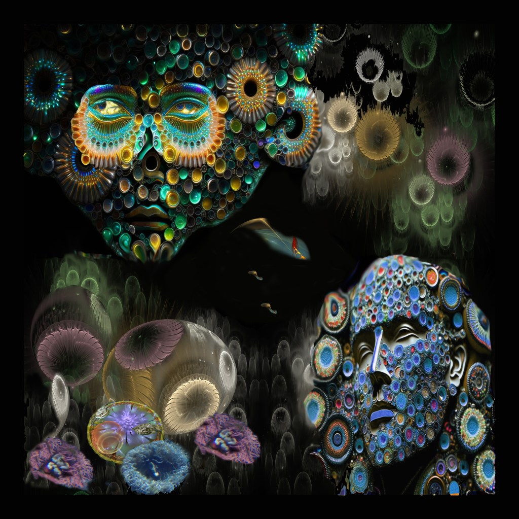 The images shown on the Website pages are predominantly created using AI and Digital Art. The aim was to demonstrate the types of images that can be produced using the latest technology. However, for Innovation the journey from initial idea to final image is more important than the final image. Images that combine art and science can evolve over long periods and require many different skills that aren’t required for traditional art. Fractal Graphics falls under an area of science called Chaos Theory. Combining Chaos Theory and AI can be very powerful. Producing artwork using Fractals provides insights into this area of science. I have included below a number of my images that use these techniques.