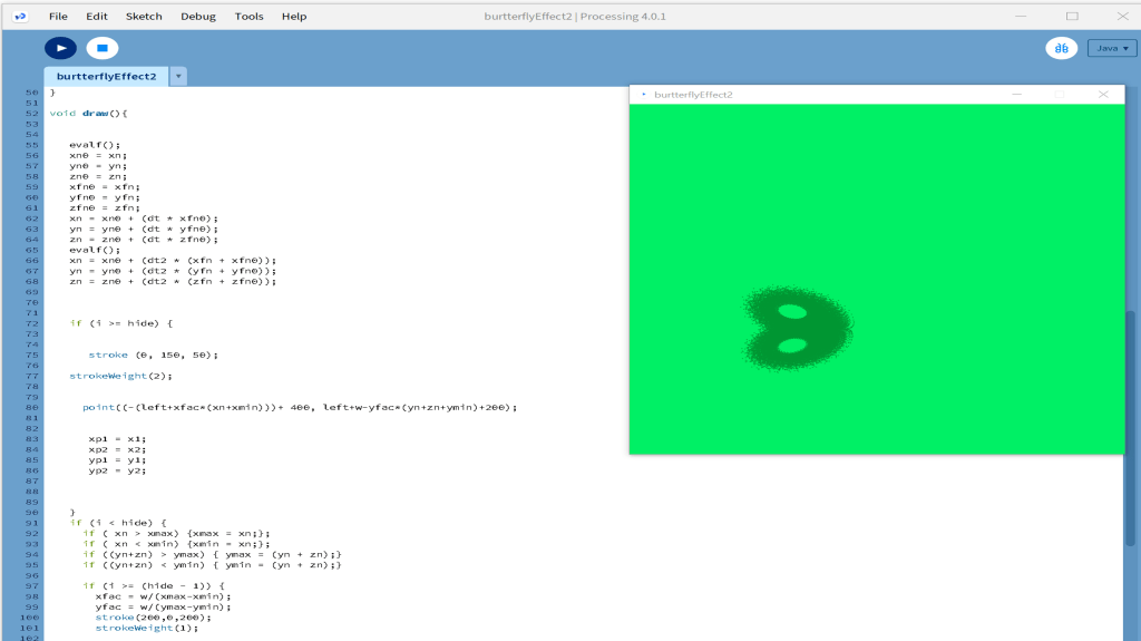 The Butterfly, created using code based on Chaos Theory (Butterfly Effect).