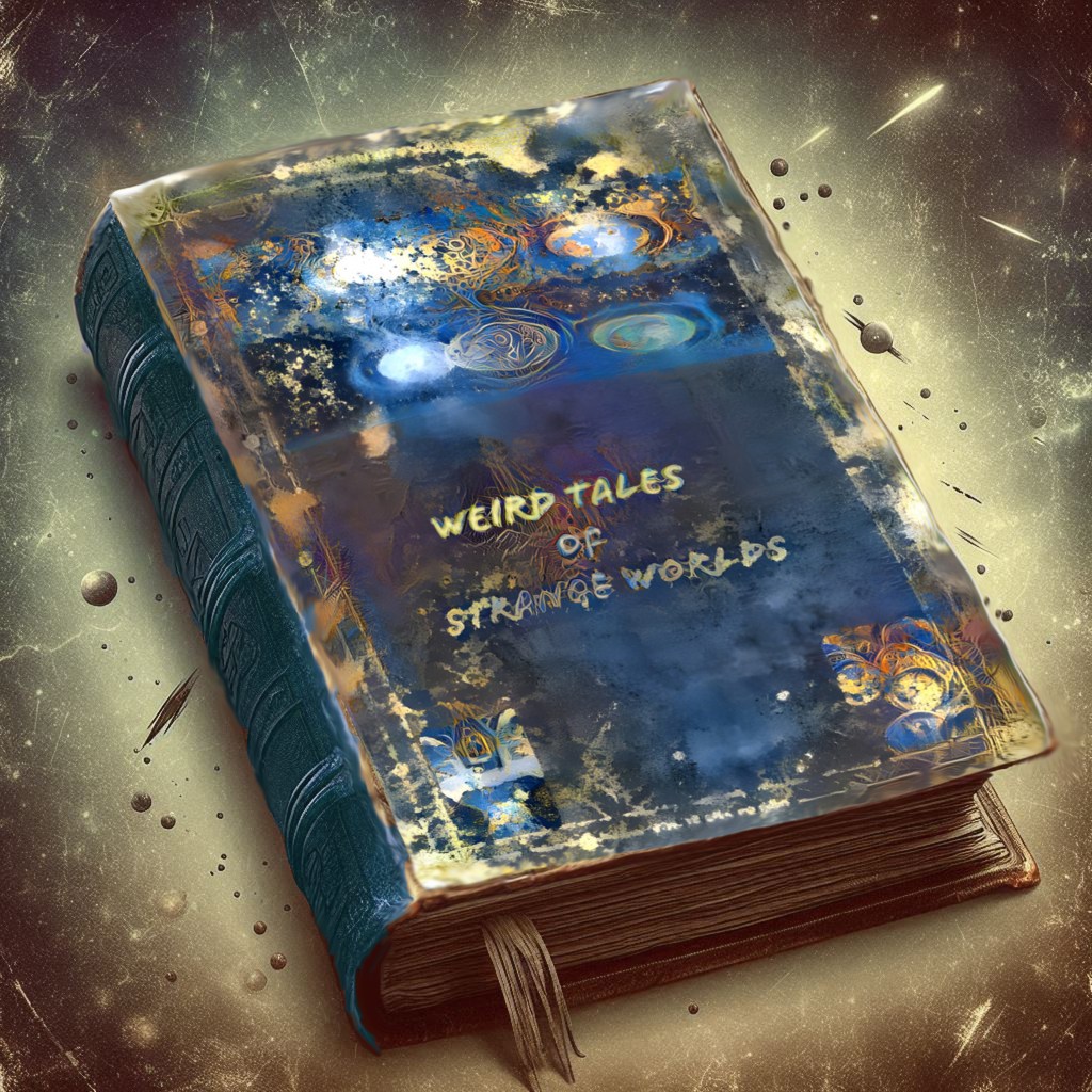 Alice is reading an old book, “Weird Tales of Strange Worlds”, which is another project.