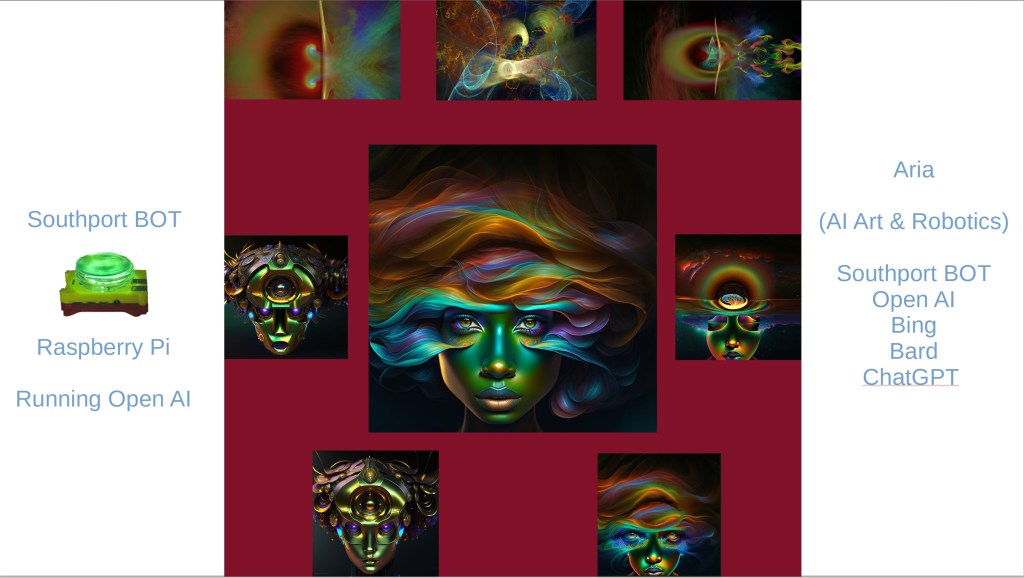 I’ve added the pics I used for a talk to Formby U3A on the benefits, concerns and potential future developments of AI. It was a fun talk so I created lots of images and talked around them. I’m dyslexic so don’t read from notes. I also took along some robotics, single board computers, Edge AI units, a few of my better pictures, a number of the children’s story books I create for the family and a few my research notes created using AI.